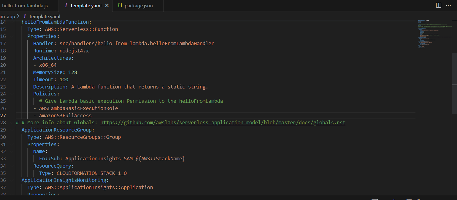 해당 역할에 s3 관련 권한을 직접 추가하거나 sam build 및 deploy 때 바로 생성할 수 있도록 template.yaml의 Policies 아래 항목에 아래와 같이 추가 후 빌드 배포하여 추가할 수 있습니다.