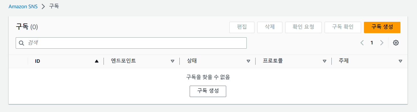 람다 함수로 이동해 대상으로 sns을 추가해줍니다.
