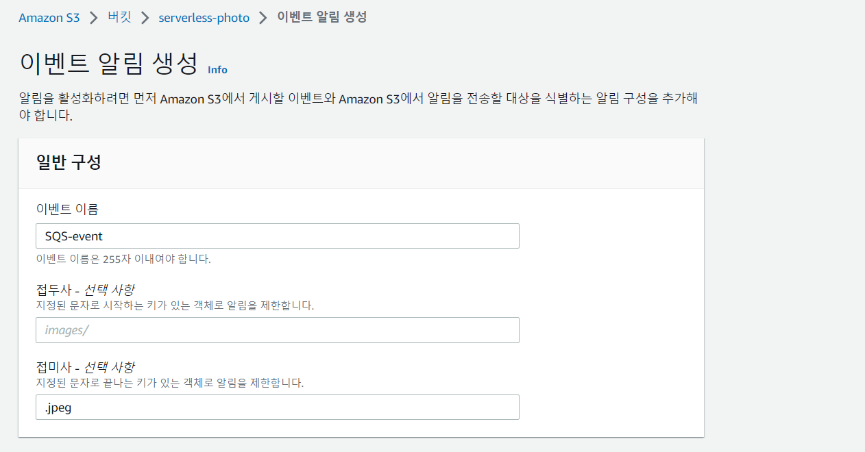 1. 원본 버킷으로 이동해 이벤트 알림을 생성해줍니다.