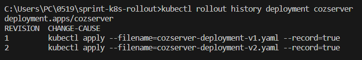 C:\Users\PC\0519\sprint-k8s-rollout> kubectl rollout history deployment cozserver