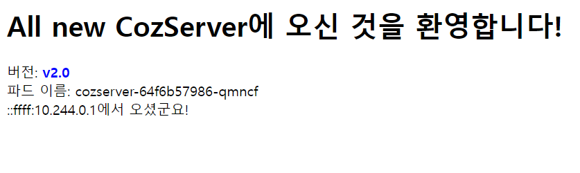 이제, 1.0 대신 새로운 파일을 이용해 기존의 CozServer 1.0 버전이 아닌, 2.0 버전을 롤링 업데이트를 통해 배포할 것입니다.