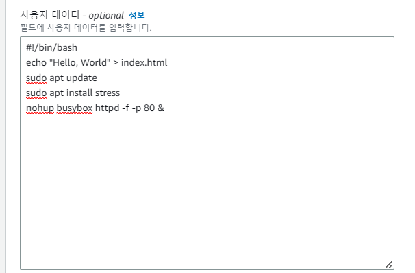 - 고급 세부 정보 -> 사용자 데이터 입력