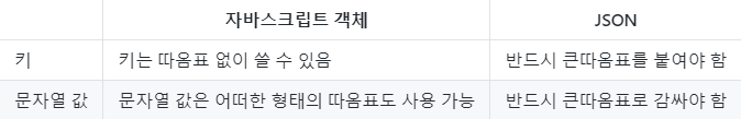 JSON을 얼핏 보기에 자바스크립트의 객체와 별반 다를 바가 없어 보이지만, 자바스크립트의 객체와는 미묘하게 다른 규칙이 있습니다.